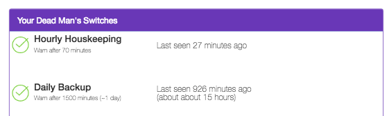 This is perfect for monitoring Cron tasks, but any regular task can be monitored in the same way. Just make an https call to confirm that the task ran succesfully